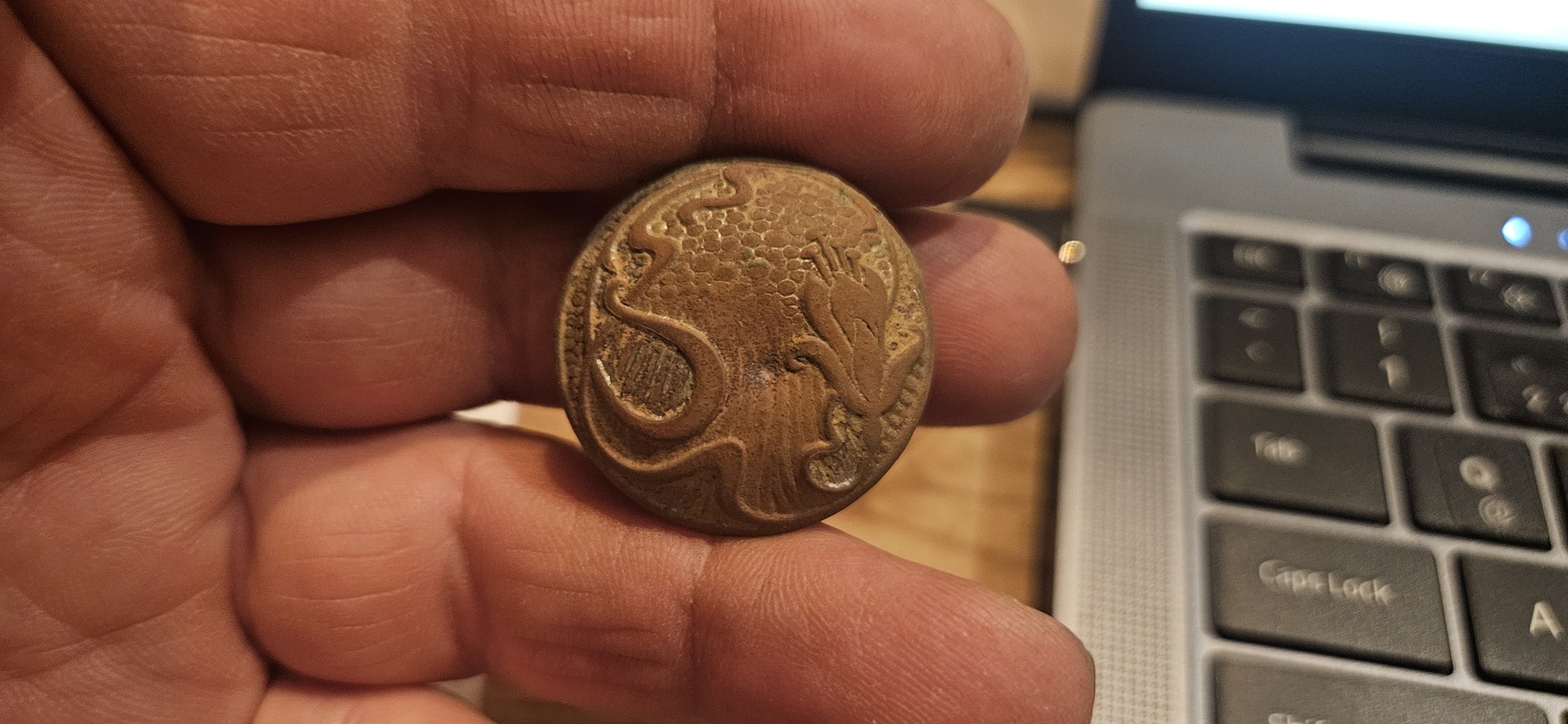 Arsen- Bronze Knopf mit Blume