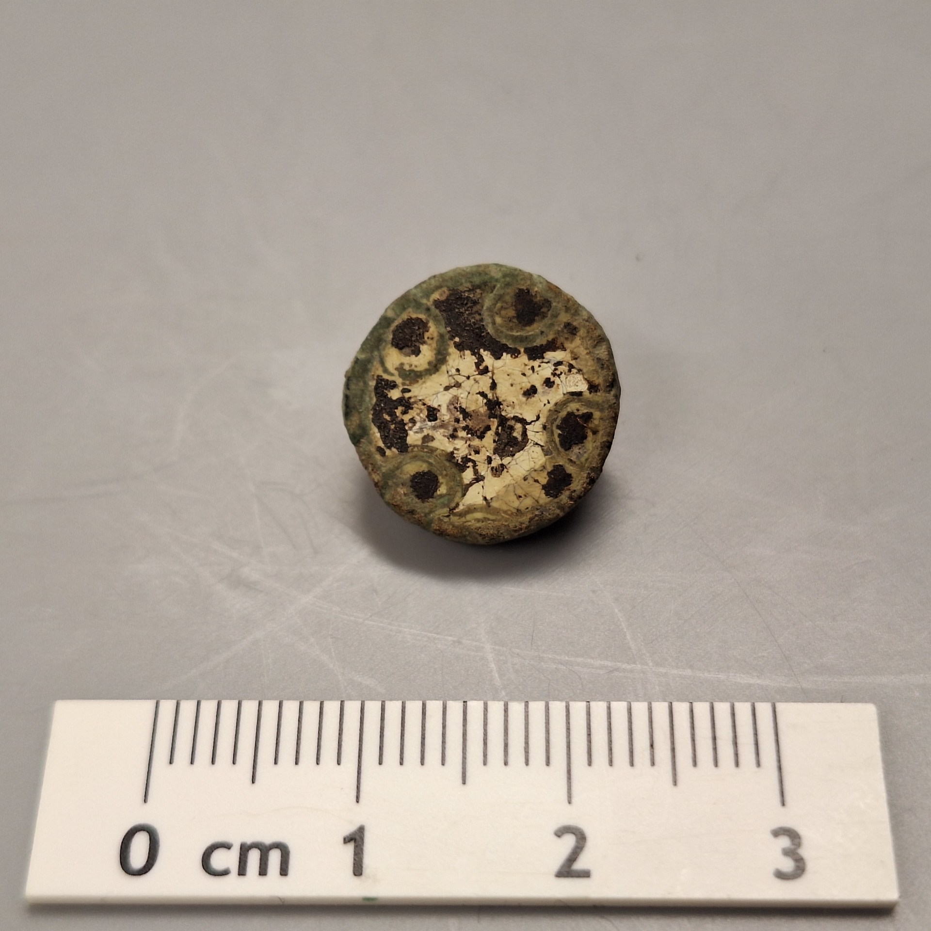 Emailscheibenfibel mit 3 peltaförmigen Drahteinlagen, Bos (2008) Typ 2.5.1.9