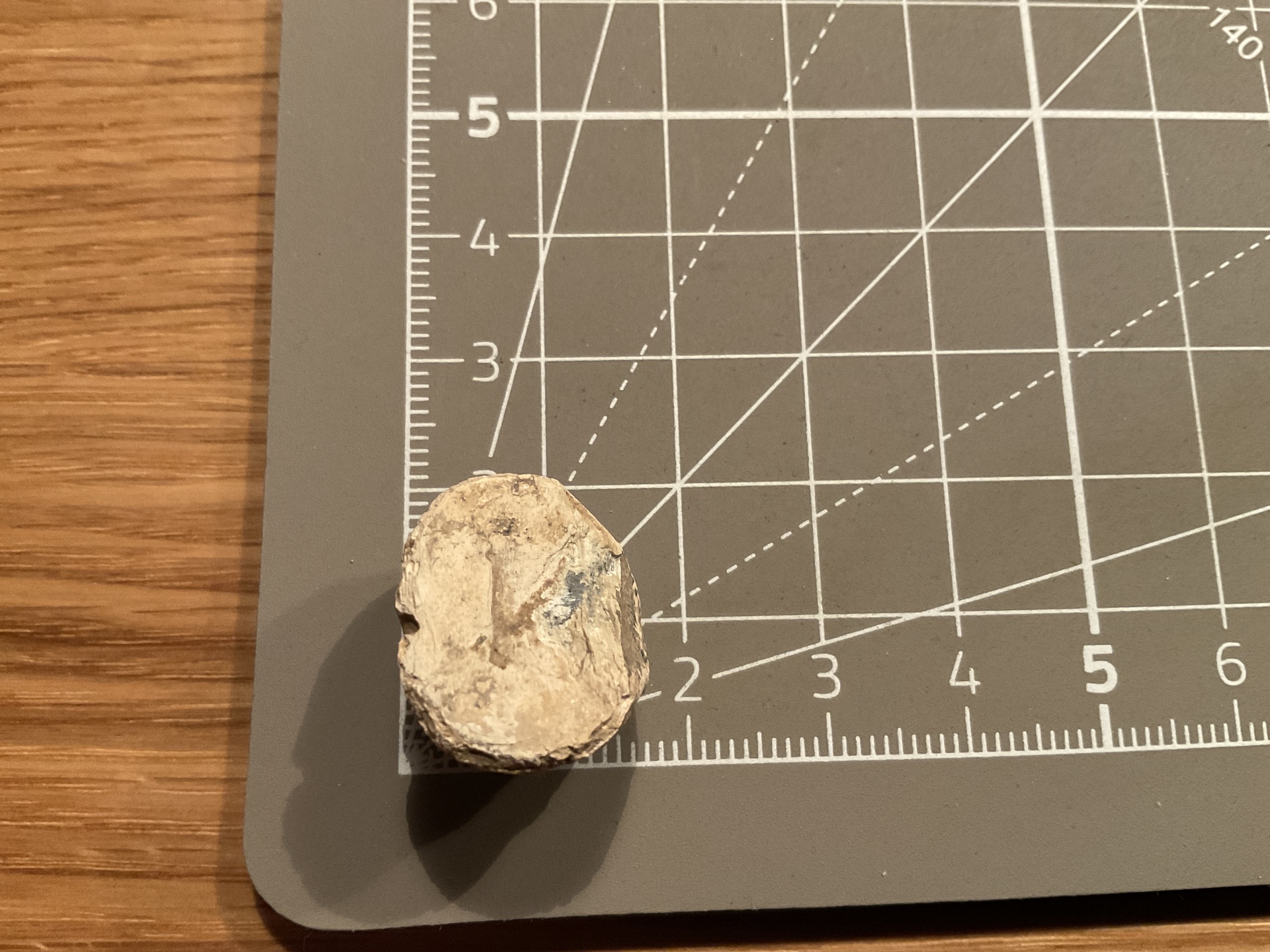 There is a V on the flattened side, it weighs exactly 20g.