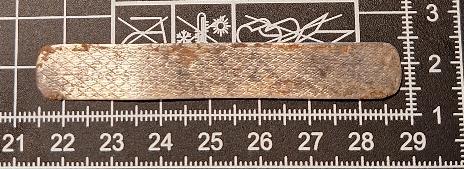 Sheet metal with several round stamps/engravings. Use unknown